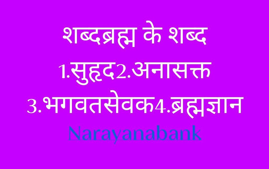 शब्दब्रह्म के शब्द 1. सुहृद2. अनासक्त 3.भगसेवक4. ब्रह्मज्ञान